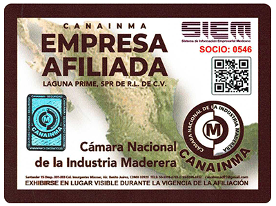 En Laguna Prime garantizamos prácticas legales y sostenibles respaldadas por certificaciones reconocidas: Estamos afiliados a la Cámara Nacional de la Industria Maderera (CANAINMA), garantizando que nuestra madera es de procedencia legal y que nuestros procesos son sustentables..